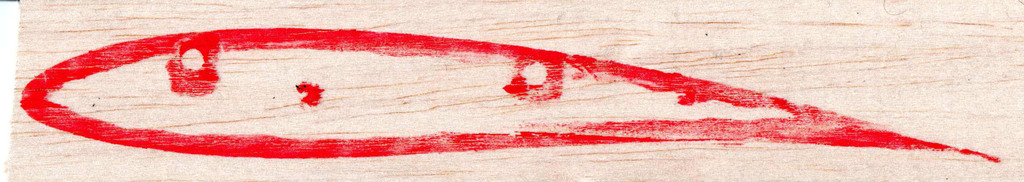 Dans un premier temps, j'ai entré dans mon logiciel CAO le "vrai" FX60-126, à 230 mm de corde. Mais par acquit de conscience, j'ai peint l'emplanture d'une aile BLS et l'ai vite plaquée sur une planchette de balsa tendre, pour en avoir une copie. J'ai scanné la planchette et j'ai comparé avec le 60-126 théorique… Et là, j'ai pu constater que les deux profils ne se superposaient pas vraiment… Par endroits, il y avait jusqu'à 2 mm d'écart. Assurément, la CAO n'était pas encore de mise et le 60-126 de BLS avait sans doute été tracé à la main… Il marchait très bien, mais était tout sauf exact, même pour ces ailes en fibre !