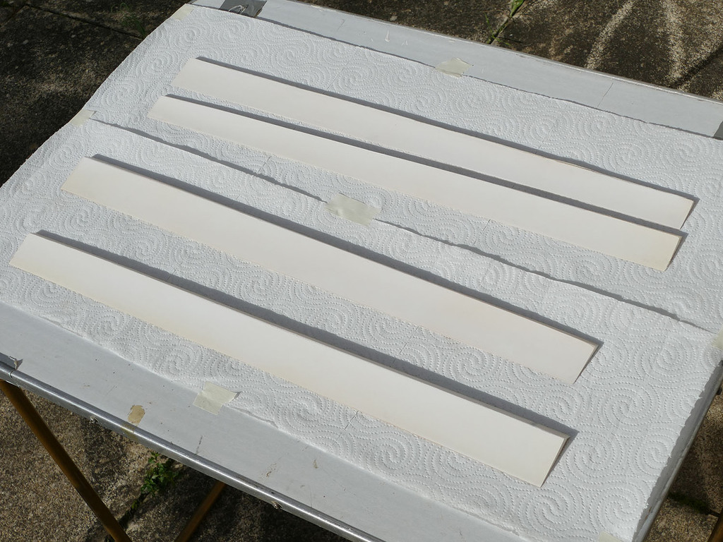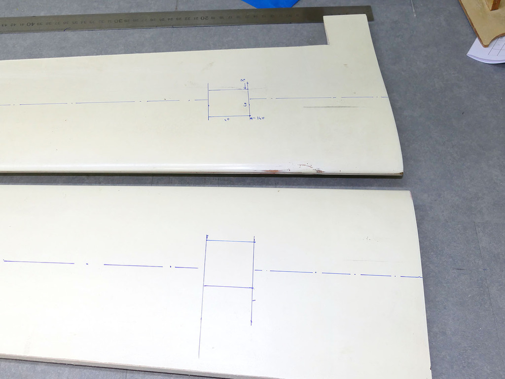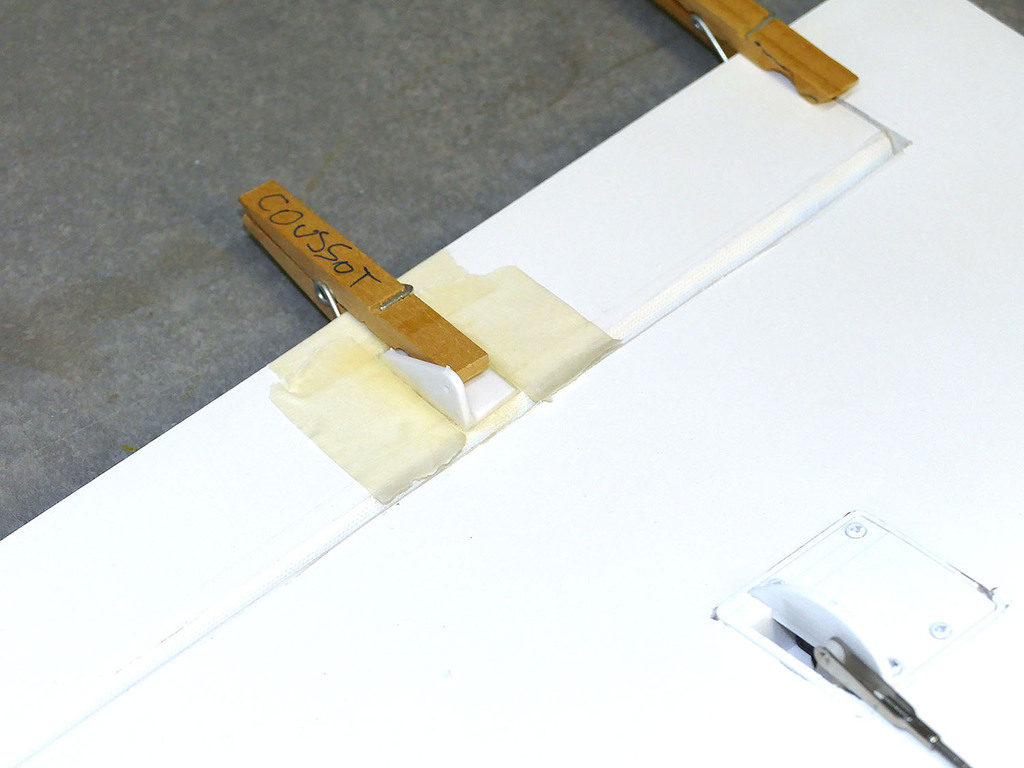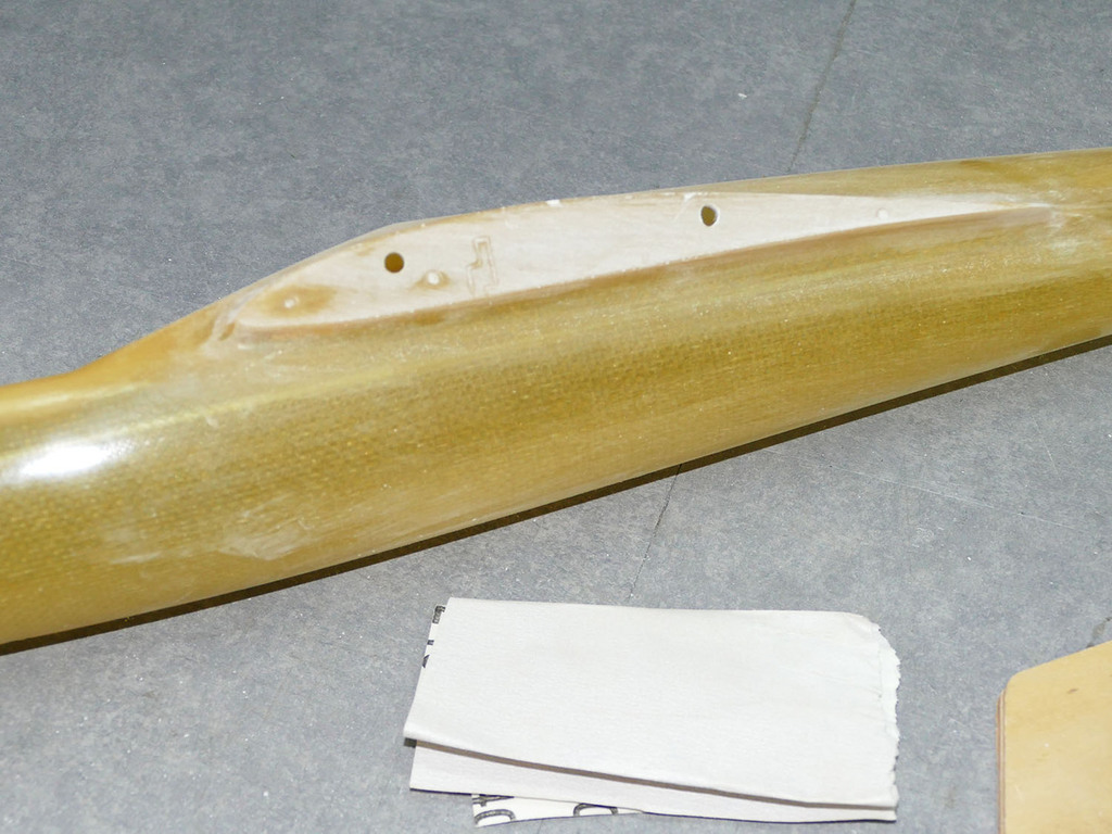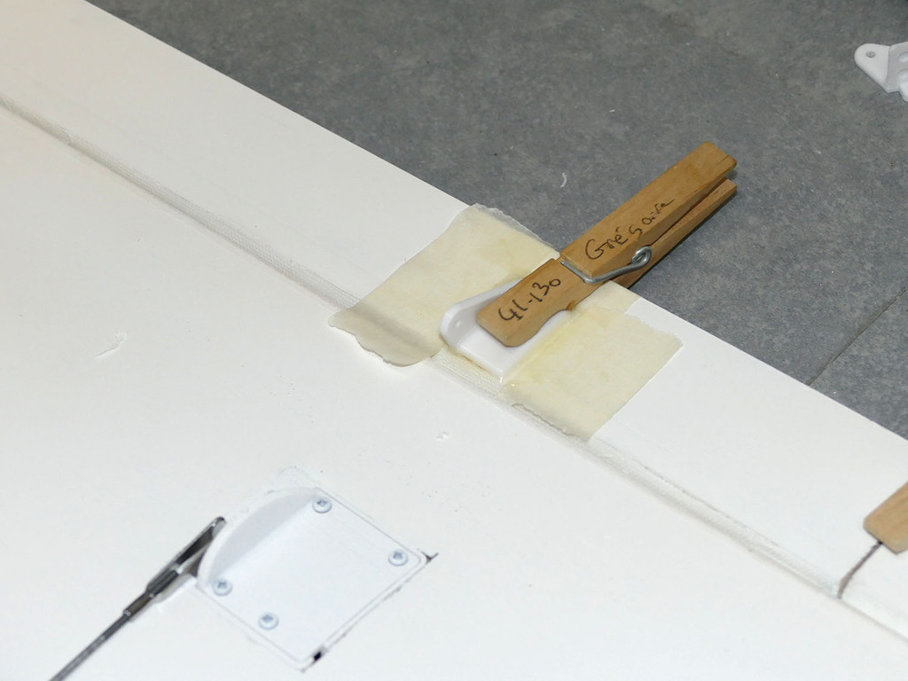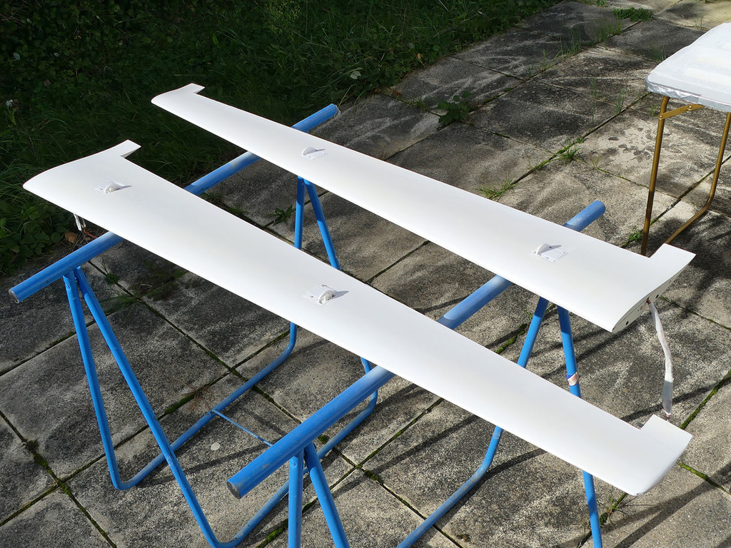 Avant de finaliser la pose des servos et du reste des commandes et de la réception, il est impératif de repeindre les ailes et leurs gouvernes, le gelcoat ayant fortement jauni avec les années.