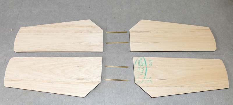 Ce qui avait bien marché dans les années quatre-vingts doit encore marcher au XXIe siècle… Deux épaisseurs de balsa plume contrecollées en emprisonnant les tubes pour les clés de stab, et une grosse séance de rabotage et de ponçage et hop, deux demi-stabs ! J'ai quand même ajouté une nervure d'emplanture en contreplaqué. Ainsi, je peux faire un premier montage du plus gros de la cellule et me prendre déjà à rêver que je le vois voler…