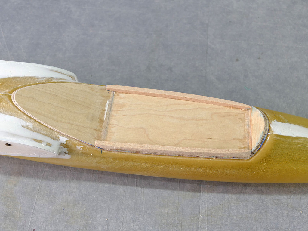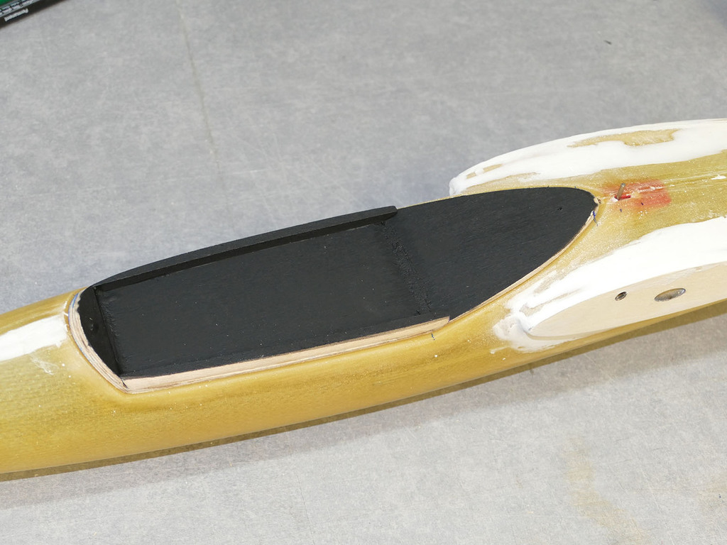 Pour le baquet, j'ai simplement utilisé les pièces prévues dans le kit du Flamingo. J’ai toutefois ajouté des baguettes latérales pour donner plus de prise au collage de la bulle et ai ajouté des raidisseurs par en dessous.