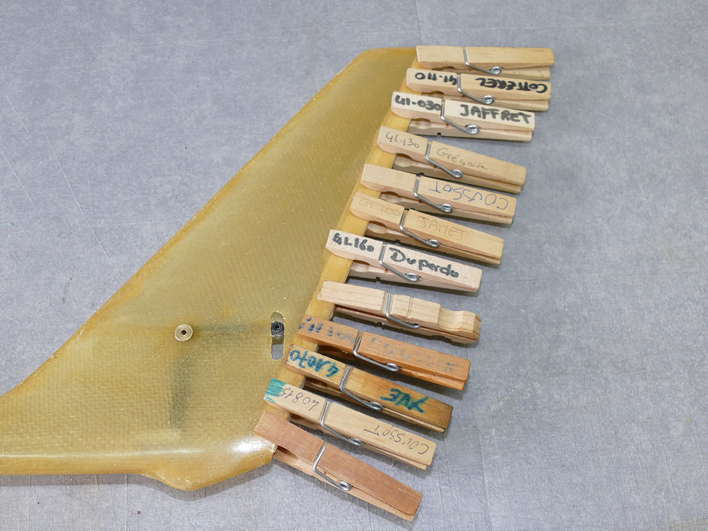 C'est l'autre très grand moment de solitude dans la fabrication de l'Epervier… Ces ailes moulées en fibre, il faut "tailler dedans"… Et il est interdit de se rater, car là encore, la probabilité d'en trouver d'autres est infime, du moins en bon état.