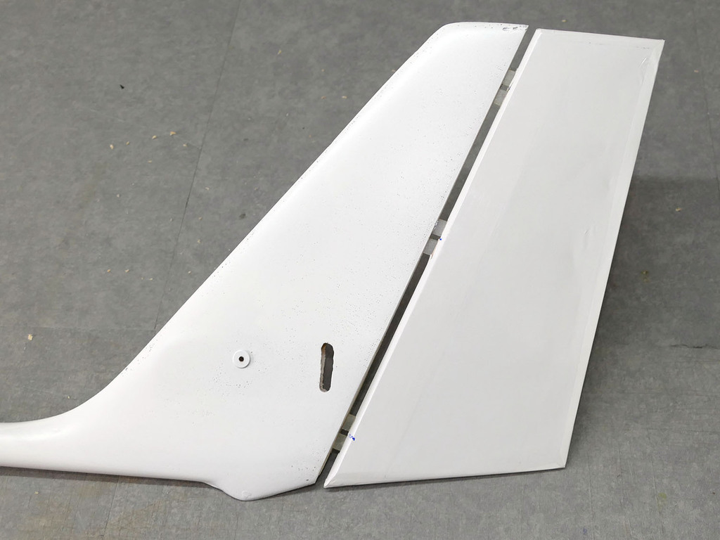 Ici, la dérive est celle d'origine du Flamingo, telle qu'elle était sur l'Epervier 01 lors de ses premiers vols. Je vais la modifier pour l'élargir, comme nous l'avions fait à l'époque.
