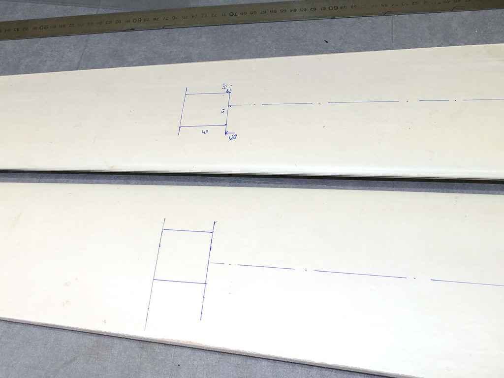 20 septembre 2024, après l'assemblage "à la chaîne" de trois mousses (le T-28 et le Typhoon de FMS et le Norden de Kavan), me voilà bien décidé à réaliser ce vieux rêve… Et donc, le premier travail sera de modifier le fuselage pour adapter les ailes de Gerfaut à profil Wortmann FX60-126 sur des emplantures prévues à l'origine pour un Eppler 193… La corde est aussi un peu plus forte, à savoir 230 mm.