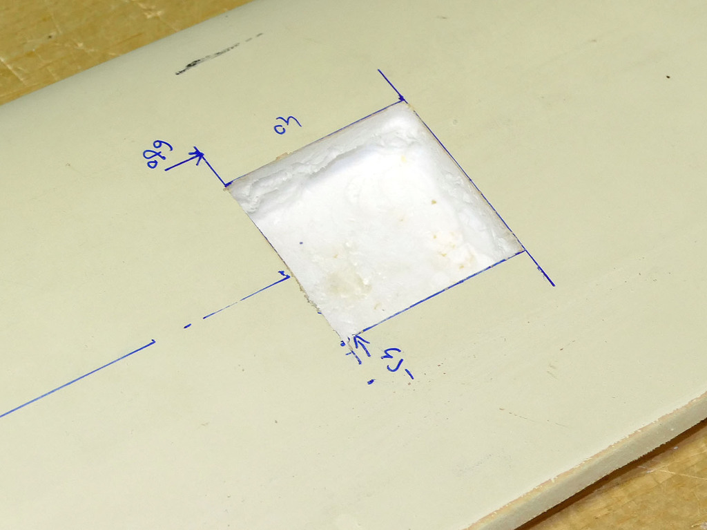 La découpe des puits de servos a été réalisée avec un disque à tronçonner, et terminée avec un ciseau à bois et une petite meule pour aplatir le plan de pose des boîtiers.
