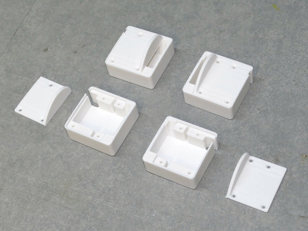 Pour installer les servos dans les ailes, j'ai conçu des boîtiers maison sous Fusion 360, et je les ai imprimés 3D en PLA blanc. Il me faut creuser des puits sous les ailes pour installer ces