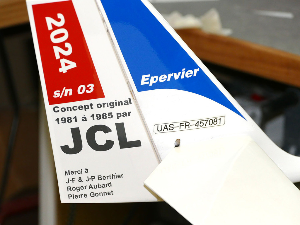 Les lettres "JCL" sur la gouverne de direction ne sont pas une erreur… Oui, moi, c'est JLC, mais mon mentor, Jean-Claude Lafitte, c'était JCL et je lui dédie ce planeur. Les personnes m'ayant aussi permis la réalisation de ce projet sont également citées sur le bas de la gouverne de direction.