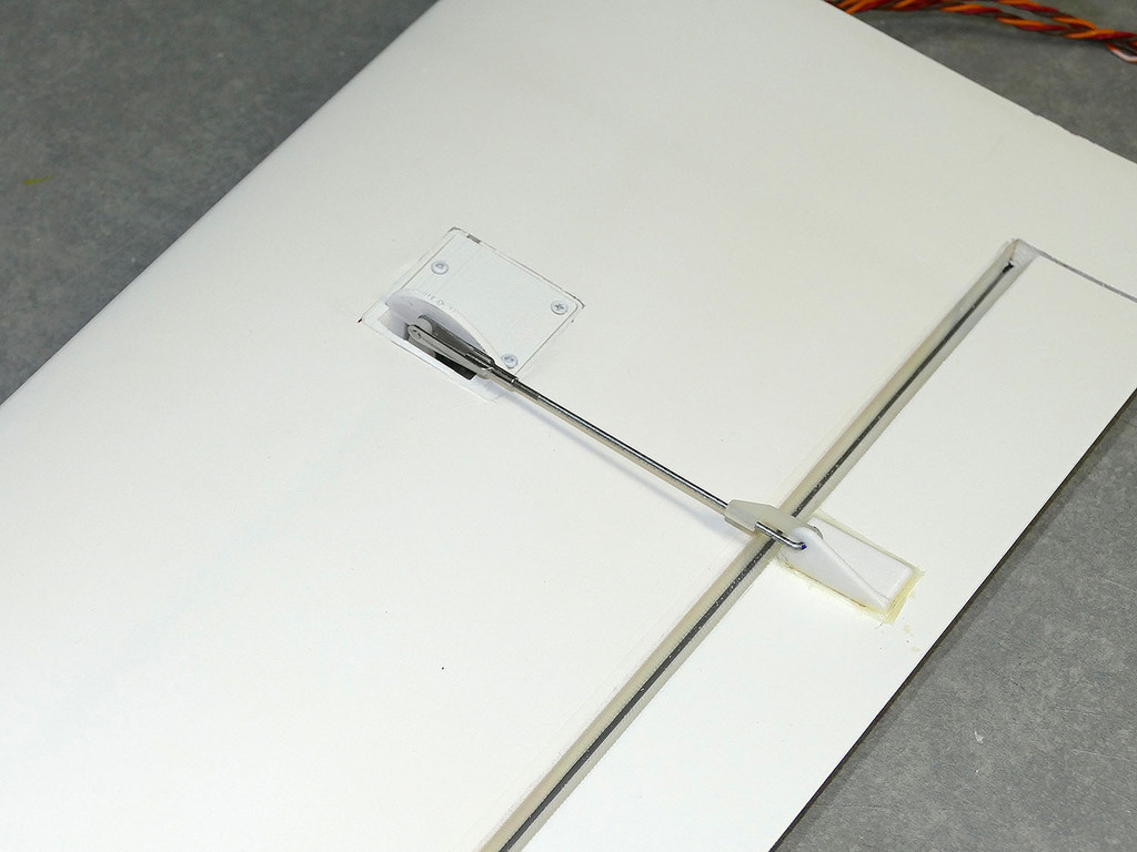 Il reste à finir le montage des servos dans les ailes. J'ai conçu des guignols spéciaux, imprimés 3D, qui s'encastrent dans les volets et les ailerons. Ils sont collés à l'époxy. Les fils des servos