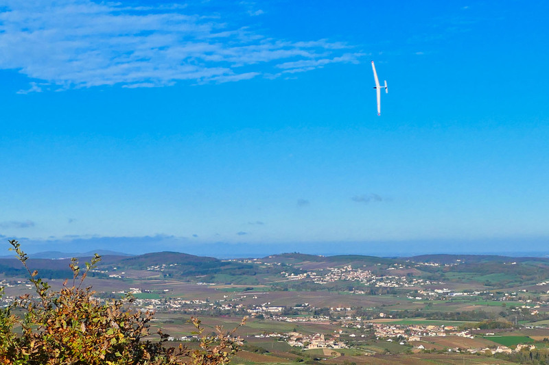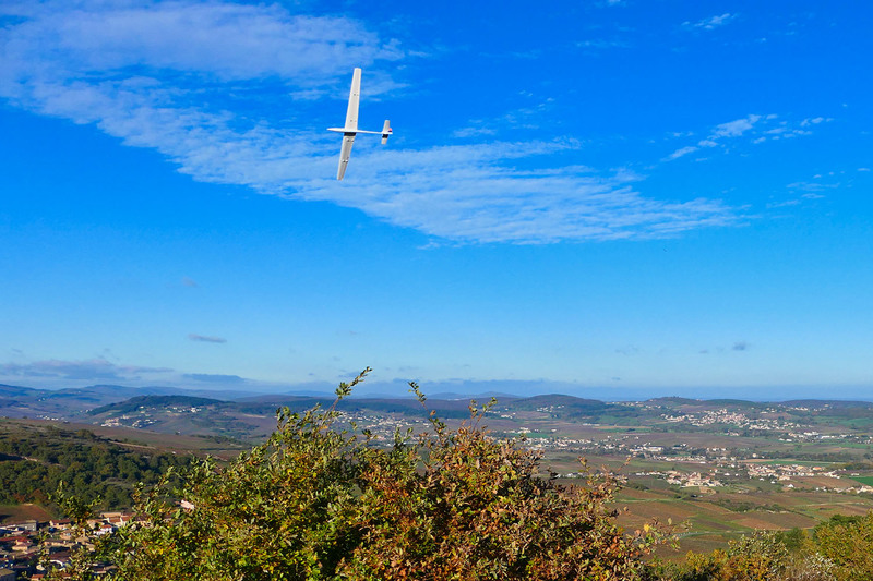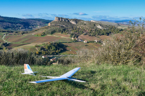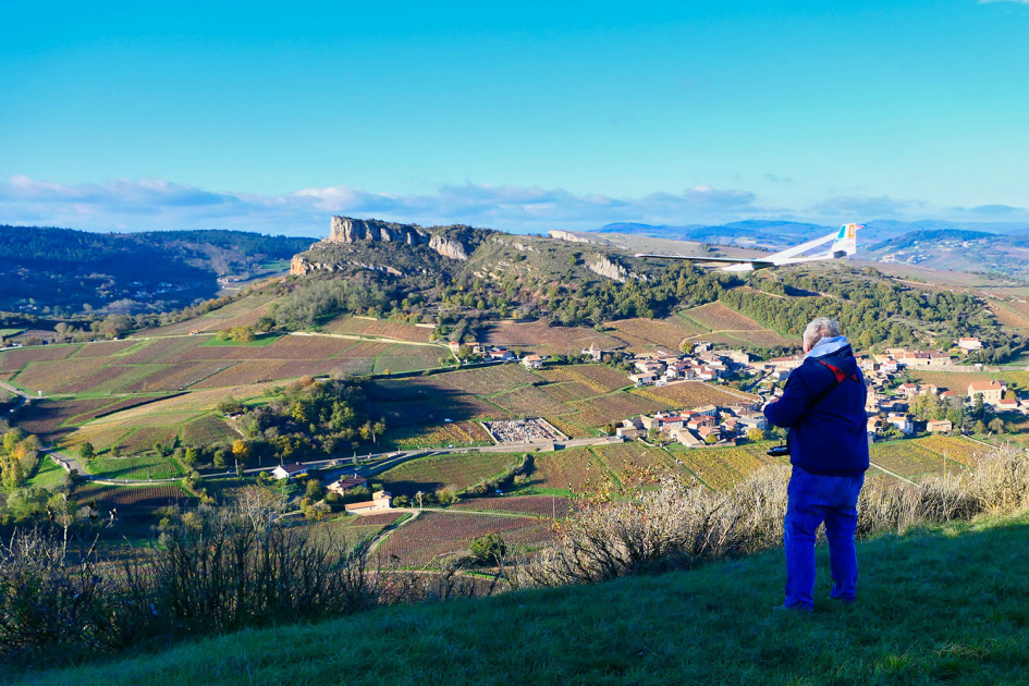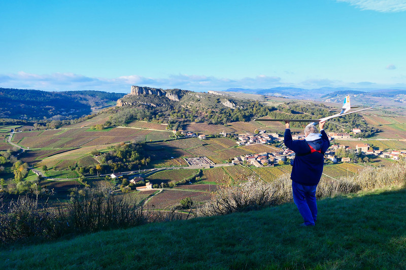 C'est avec ce souvenir que je pointe le 03 le museau vers la Roche de Solutré… Le trou est bien plus profond, et dessous, c'est soit les buis, soit les vignes, au choix ! Allez hop, une grande respiration, une bonne poussée et… la même image devant les yeux, l'Epervier 03 part tout droit et même prend immédiatement de la hauteur, il n'y a pas grand-chose à faire… Cette fois, j'ai 25 ans, c'est sûr !