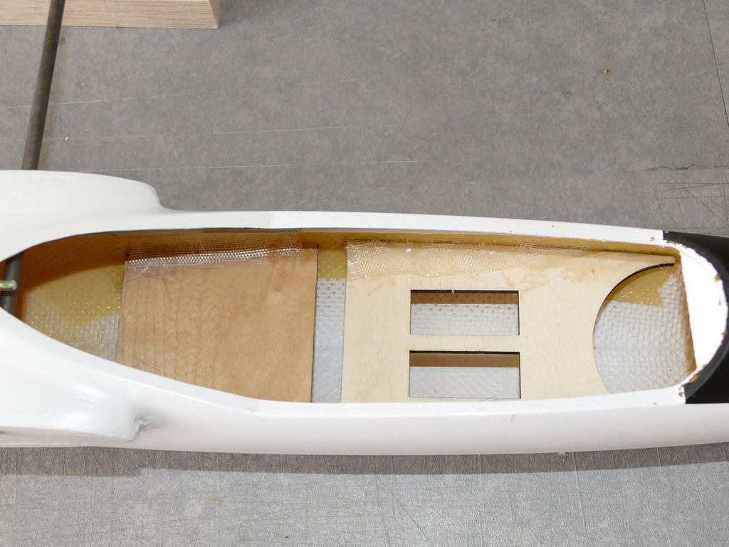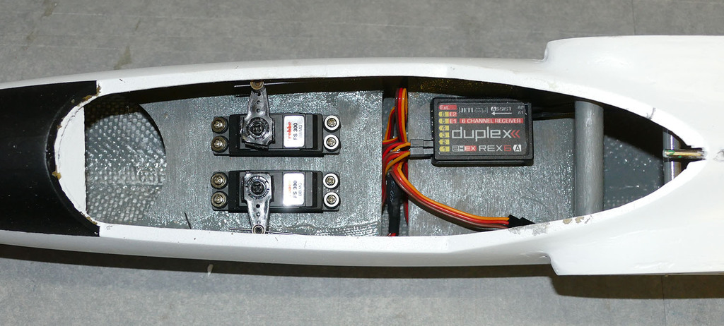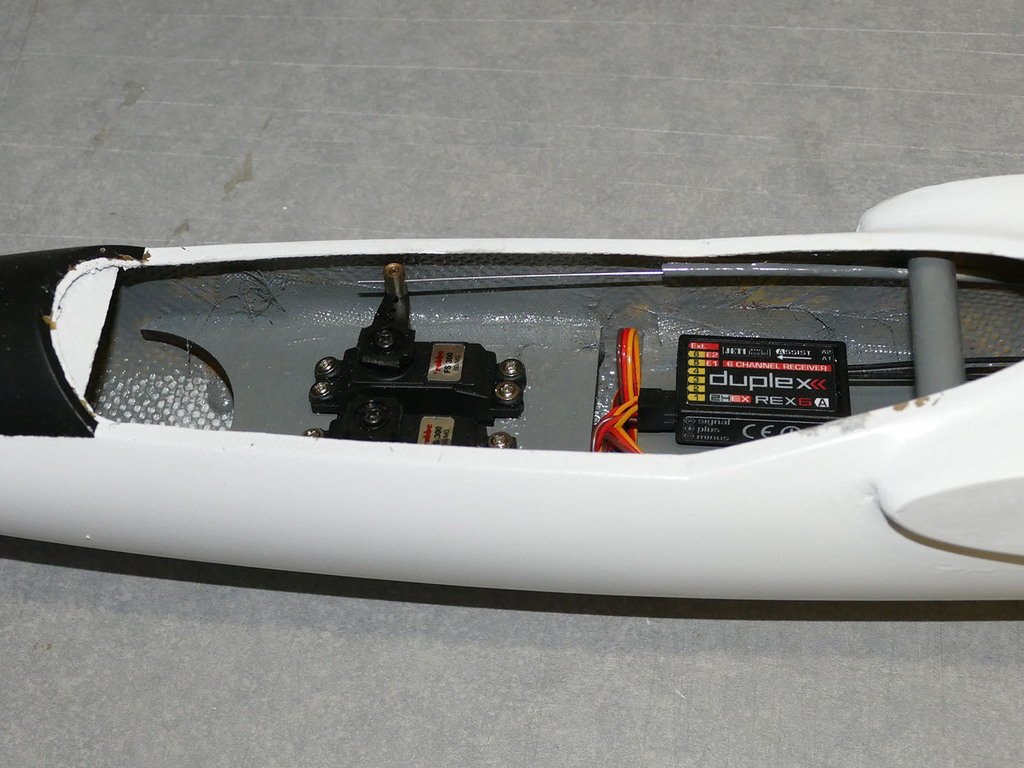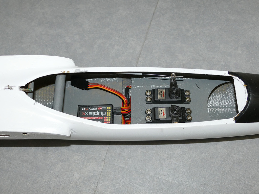 La cellule est terminée, il reste à finir de l'équiper. Je commence par le fuselage, qui recevra le récepteur, deux servo et la batterie de réception.