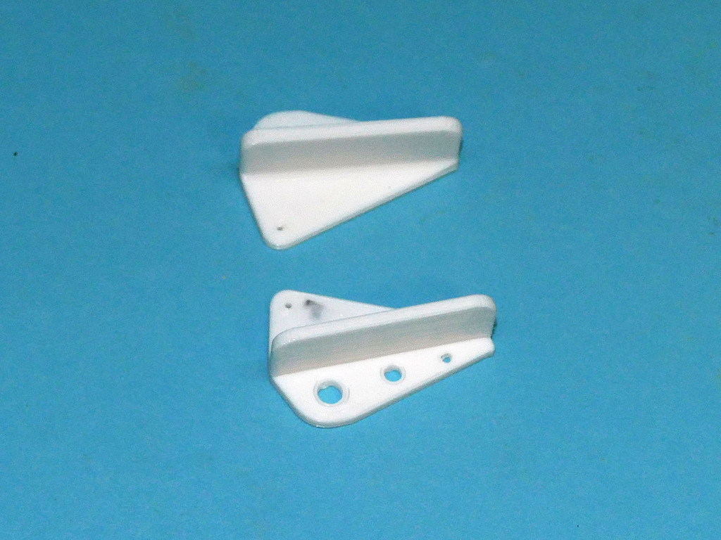 Les guignols imprimés 3D ont été simplement collés à la cyano médium et accélérateur. Une petite fente dans l'aileron reçoit une patte du guignol, ce qui améliore largement le collage.