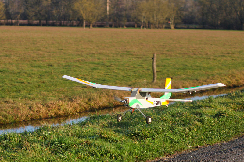 d'approche que le deux axes qui papillonne au moindre coup d'air taquin, et il n'allonge pas trop, ce qui permet de bien visualiser l'angle de plané. On peut l'amener sur un plan moyen moteur coupé,