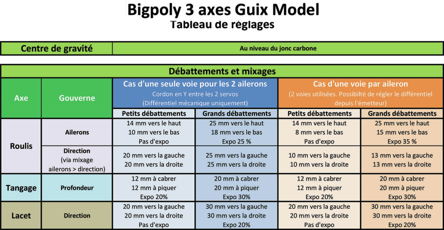 ailerons > direction pour là aussi ne presque plus sentir le lacet inverse. Donc, le BigPoly 3 axes peut se contenter d'un équipement radio basique et de réglages ultra-simplifiés.