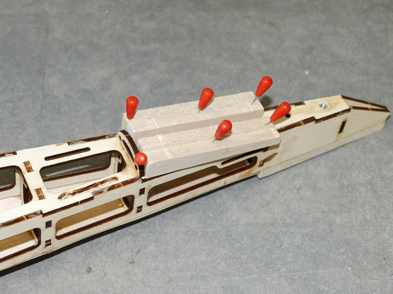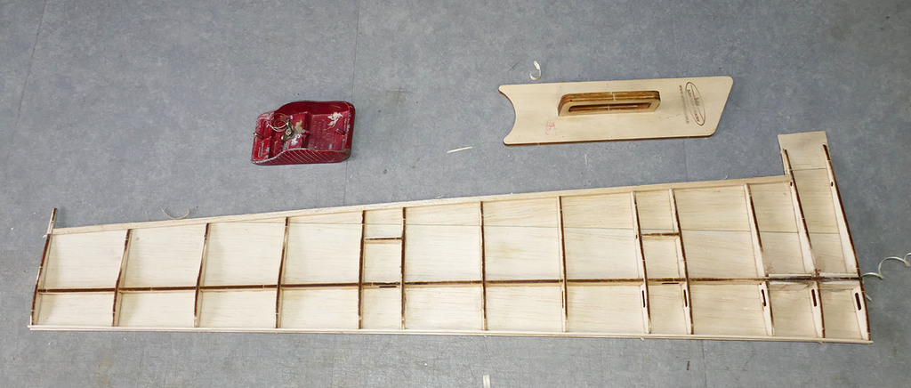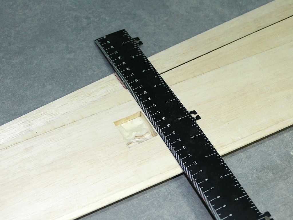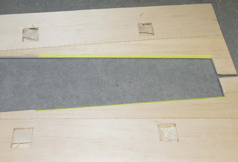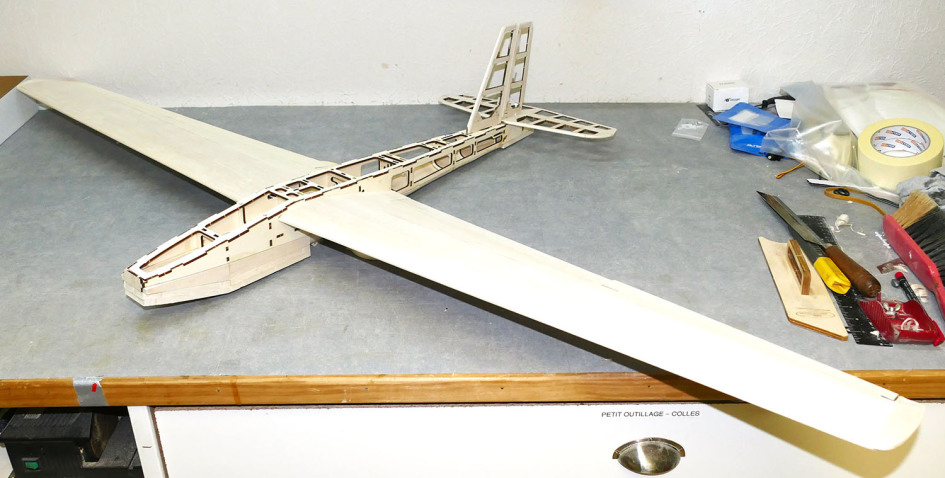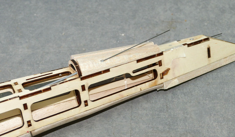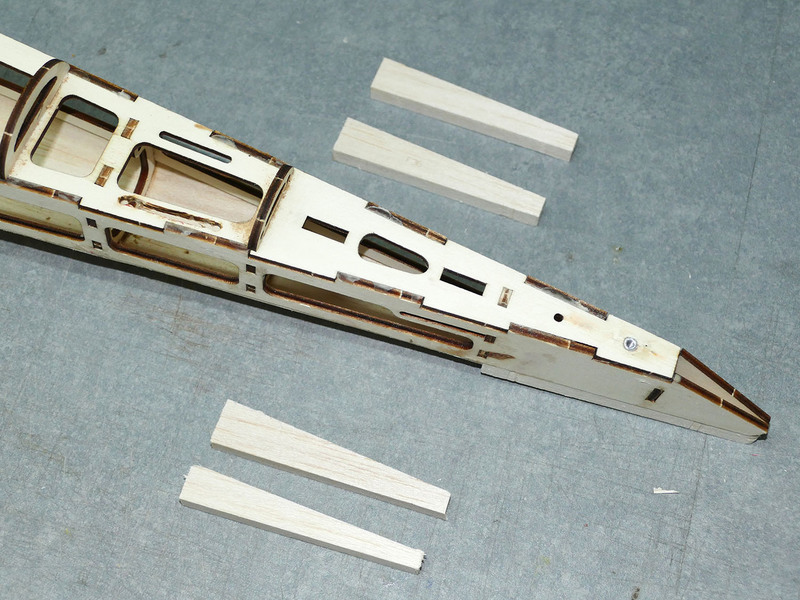 Dans ce kit prototype, il manquait les baguettes balsa pour réaliser les faux bords de fuite, je les ai sortis de mon stock et ce sera corrigé pour les kits de série. C'est à ça que servent les prototypes ! Déceler les erreurs, manques, améliorations possibles…