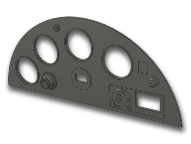 A partir de la documentation "Fly Scale Project", j'ai dessiné un tableau de bord dans Fusion 360 que j'ai imprimé 3D, et sous Illustrator et Photoshop, j'ai dessiné les instruments à placer derrière ce tableau de bord.