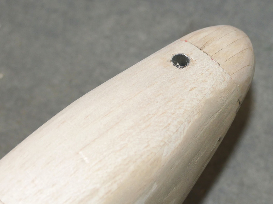Le trou du crochet, sous le nez, a été renforcé par un morceau de tube aluminium de 8 mm de diamètre extérieur.